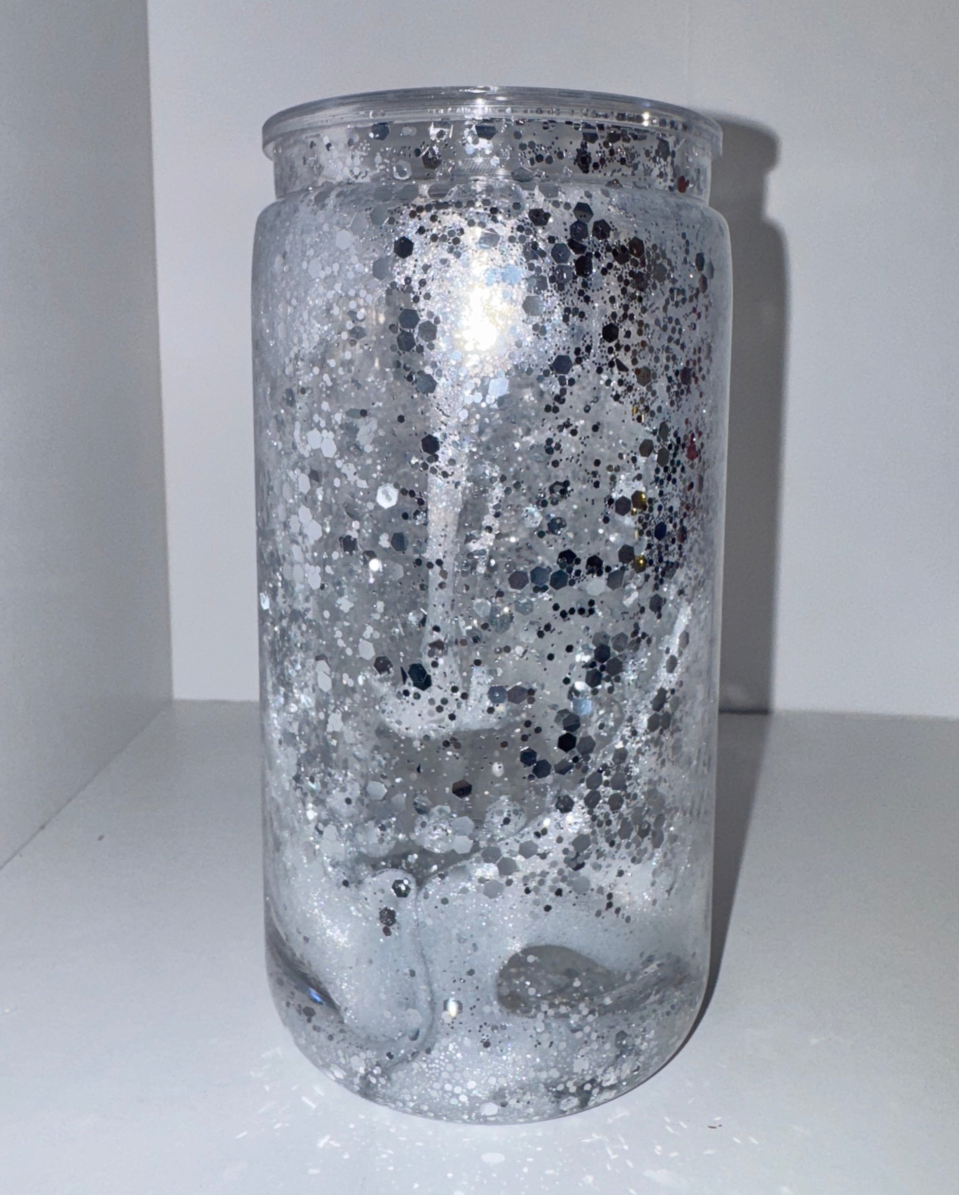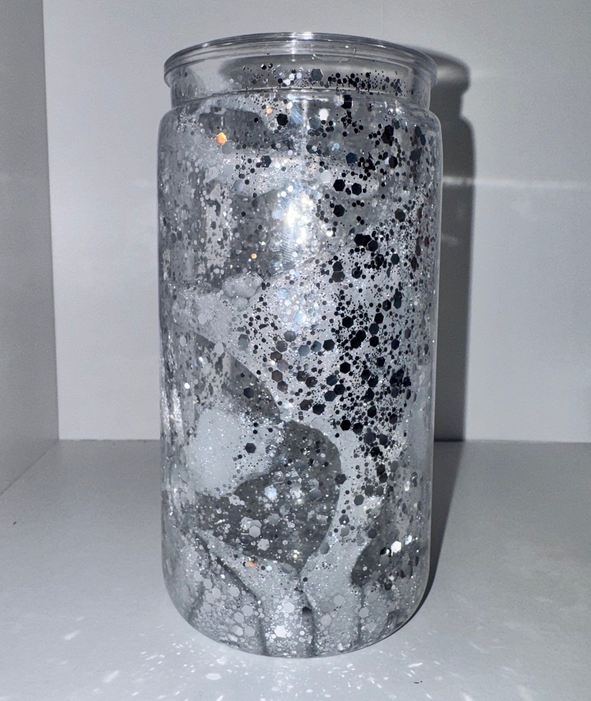 16oz Acrylic White&Silver Mica Lava Drip